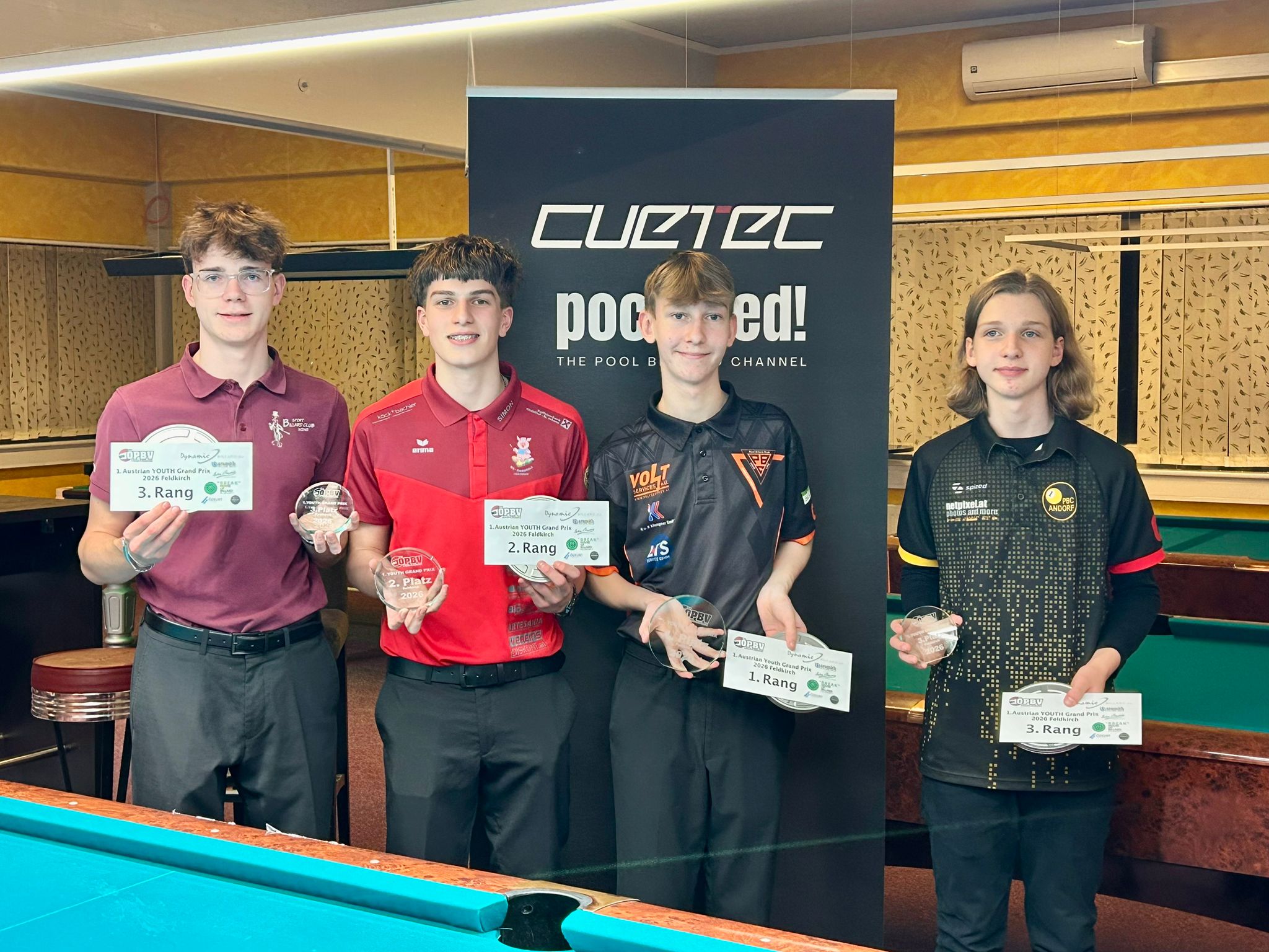 Am selben Tag fand in Feldkirch der 1. Jugend Grand Prix statt, Disziplin 9-Ball, den Valerian Zachhuber vom PBC ASKÖ Linz ungeschlagen gewann. Wir gratulieren!!! Dritter wurde Newcomer Michael Wöginger vom PBC Andorf. Ebenfalls herzliche Gratulation zu dieser starken Leistung.